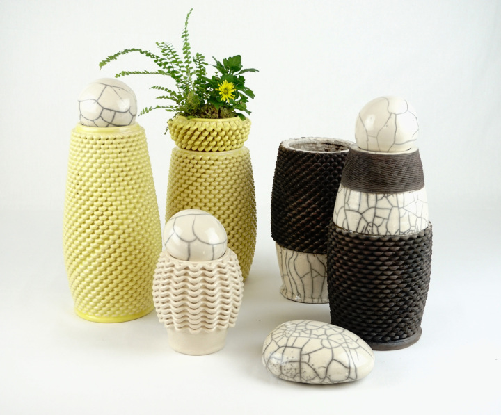 A la croisée de l’art et de la science, cette collection de piéces uniques permet d’explorer la richesse et la diversité des textures de la céramique à partir de modèles mathématiques. Différentes finitions, RAKU, terre naturelle, émaux, ont été choisies pour mettre en valeur ces objets dont la hauteur se situe entre 25-45cm.